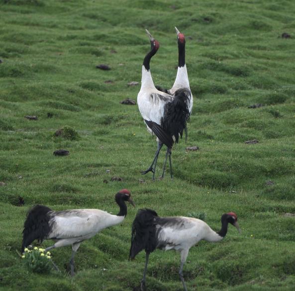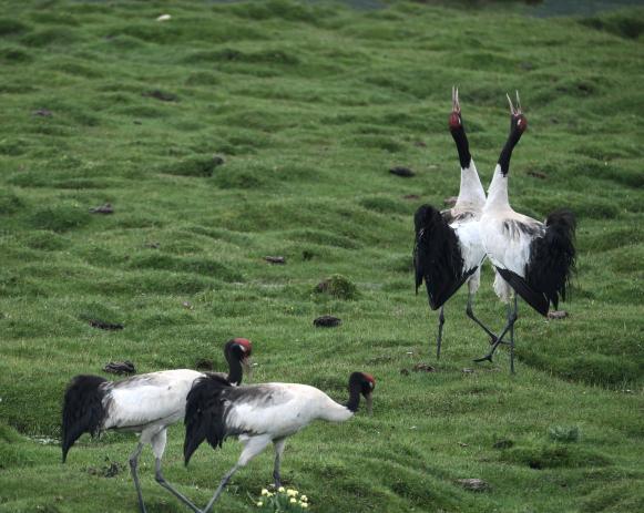 La réserve naturelle nationale de Longbao, située dans la commune éponyme de Longbao, dans la préfecture autonome tibétaine de Yushu, dans la province du Qinghai, est nichée à une altitude moyenne de plus de 4200 mètres. Elle figure parmi les zones humides de plateau les plus élevées au monde et constitue la première réserve établie en Chine dans le but principal de protéger les grues à cou noir et leurs habitats de reproduction. Si vous avez l'occasion de la visiter, vous serez témoin de l'élégante danse des couples de grues à cou noir, comme si vous étiez transporté dans un paradis ornithologique. (Photos : He Ruiming)