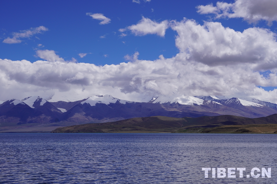 En photo : le lac Mapham Yutso et les montagnes enneigées.