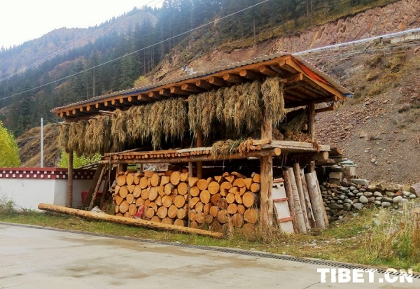 En photo : un entrep?t de foin et de bois le long de la route du village.