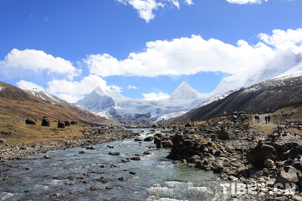 Les sommets restent gelés toute l'année. Au pied de la montagne, la fonte des glaciers a formé un lac d'une clarté semblable à celle d'un miroir - le lac Samutso.