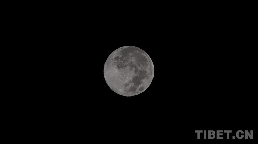 La super lune au matin du 16 novembre au-dessus des montagnes enneigées de Minling