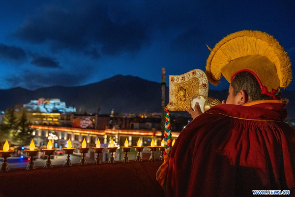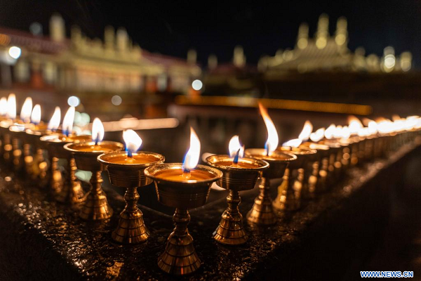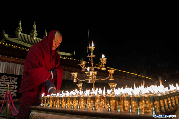 Les Tibétains allument des lampes à beurre et prient toute la nuit pour Tsong Khapa, un ma?tre du bouddhisme tibétain, lors de la fête annuelle. (Photo : Tenzing Nima Qadhup)