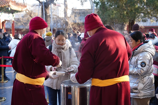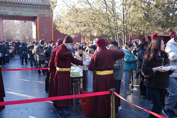 En photo : La bouillie de Laba distribuée au temple Palais Yonghe.