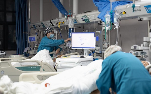 Des infirmières soignent des personnes blessées dans un séisme à l'H?pital populaire de Xigaze, dans la ville de Xigaze de la région autonome du Xizang, dans le sud-ouest de la Chine, le 7 janvier 2025.(Photo : Tenzin Nyida)