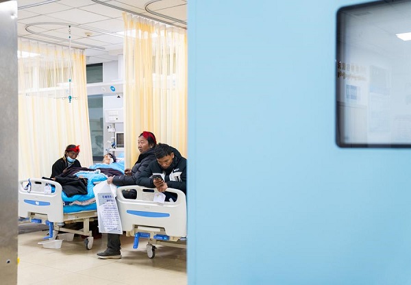 Des personnes blessées dans un séisme re?oivent des traitements médicaux à l'H?pital populaire de Xigaze, dans la ville de Xigaze de la région autonome du Xizang, dans le sud-ouest de la Chine, le 7 janvier 2025.(Photo : Tenzin Nyida)