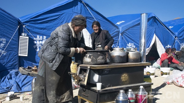 Dans le centre d'accueil du village de Zuocuo, les jeunes s'activent à décharger les fournitures de secours fra?chement arrivées, tandis que les anciens profitent du soleil devant l'entrée des tentes en savourant du thé au beurre. Les enfants jouent en groupes. Face à cette catastrophe sismique, la confiance s'avère plus précieuse que l'or et l'argent. Les sinistrés du comté de Dingri sont convaincus qu'avec l'aide du PCC et du gouvernement, ils disposent de la confiance, des capacités et de la détermination nécessaires pour reconstruire leur foyer de manière encore meilleure.
