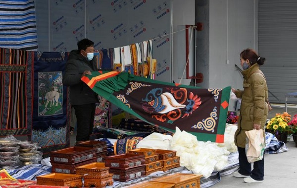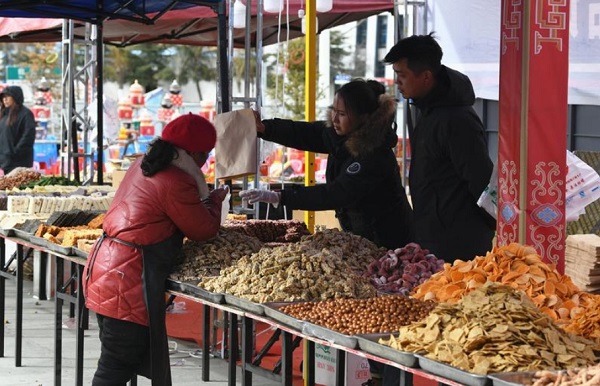 La foire-exposition du Festival des produits du Nouvel An ? Bonheur à Chengguan · Une vie avantageuse ? se tient au marché agricole polyvalent de Gongbutang, à Lhassa. à travers cette exposition de produits festifs, cet événement offre aux habitants un large choix de provisions pour le Nouvel An, créant ainsi une ambiance chaleureuse pour célébrer les fêtes.