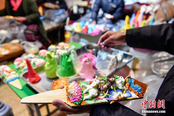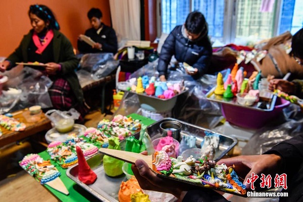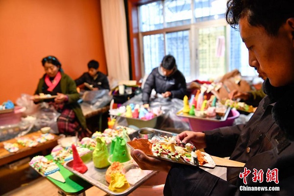 à l'approche du Nouvel An tibétain, les sculptures en beurre se vendent très bien sur le marché des produits du Nouvel An à Lhassa. En tibétain, elles sont appelées ? zizha ? et constituent l'un des articles indispensables dans les foyers tibétains pour célébrer cette fête.
