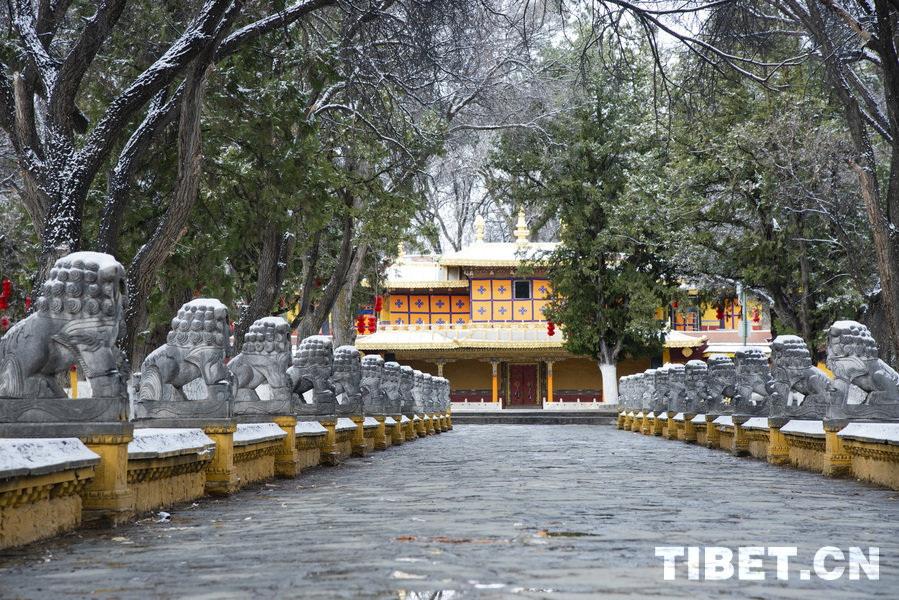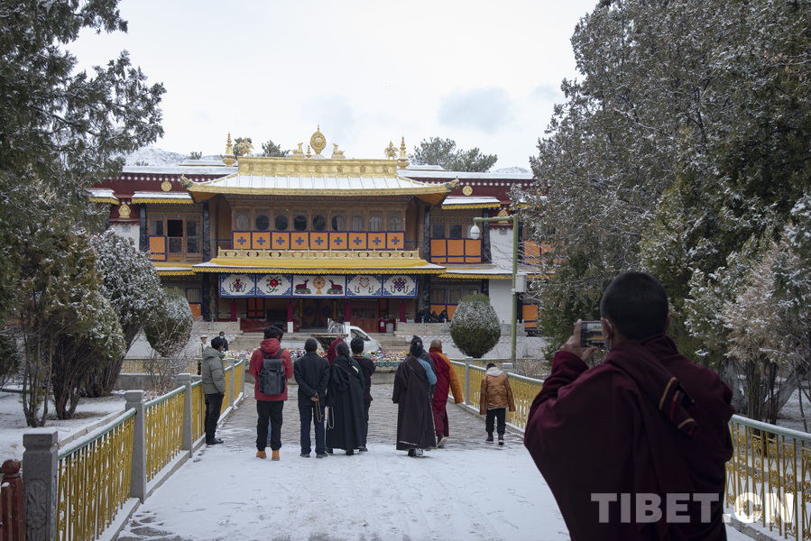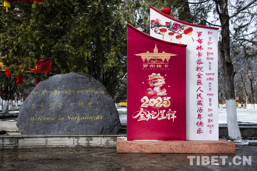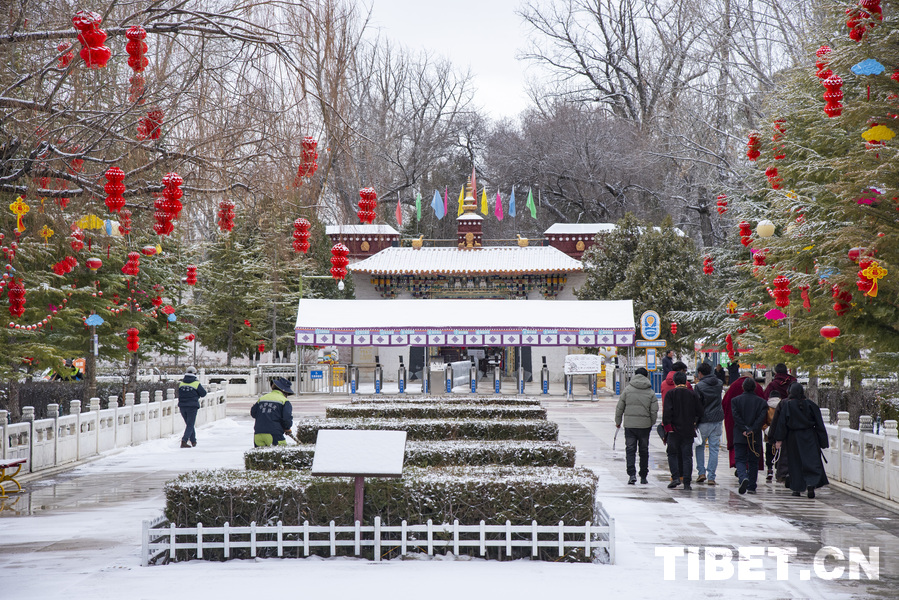 à l'approche du Nouvel An tibétain, les rues de Lhassa débordent d'une atmosphère festive. Le 19 février, la ville a connu sa deuxième chute de neige depuis le début du printemps. Sous son manteau blanc, le parc Norbulingka, site classé au patrimoine mondial, dégage une majesté, une beauté et une sérénité accrues.