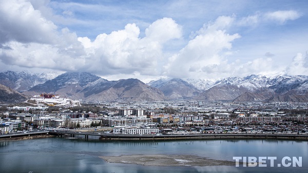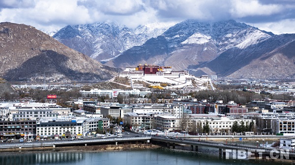Le 19 février, après des chutes de neige continues, la ville de Lhassa, au Xizang, était entourée de montagnes enneigées. Les montagnes couvertes de neige et l'architecture se mêlent pour former un paysage magnifique.