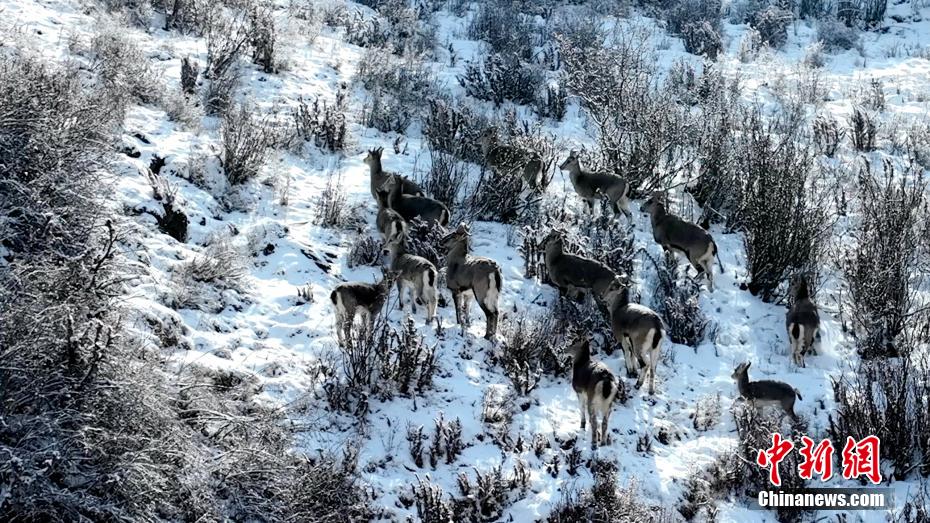 Au début du mois de mars, le comté de Qilian, situé dans la préfecture autonome tibétaine de Haibei, dans l'arrière-pays des monts Qilian de la province du Qinghai, a accueilli ses premières chutes de neige depuis le début du printemps du Nouvel an chinois. à travers l'objectif de son drone prenant des photos aériennes, un photographe a capturé les vastes montagnes enneigées, où des troupeaux de bharals parcourent les forêts le long des pentes escarpées à la recherche de nourriture, esquissant ainsi une véritable scène de paysage septentrional. Ces dernières années, grace à des mesures de protection telles que le reboisement et la préservation des sources d'eau, le taux de couverture végétale dans le comté de Qilian s'est considérablement amélioré, les animaux sauvages, autrefois cachés dans les profondeurs des montagnes, apparaissent désormais fréquemment sous les yeux des habitants.