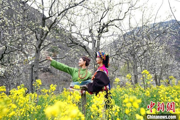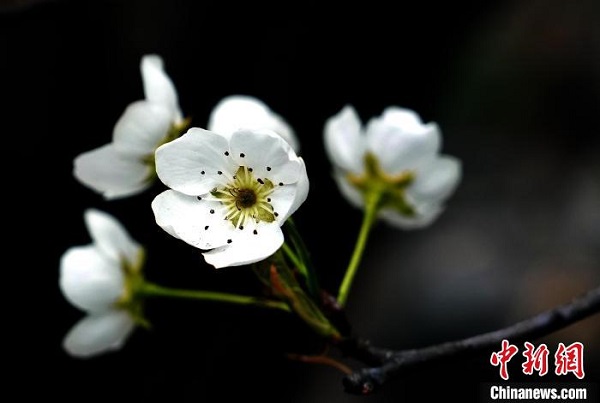 Ces jours-ci, les fleurs de poirier sont en pleine floraison dans le district de Jinchuan, dans la préfecture autonome tibétaine et Qiang d'Aba, située dans la province du Sichuan, les montagnes et les champs sont couverts de fleurs de poirier blanc neige qui flottent dans le vent, cette scène enivrante attire de nombreux touristes pour visiter le lieu et prendre des photos.