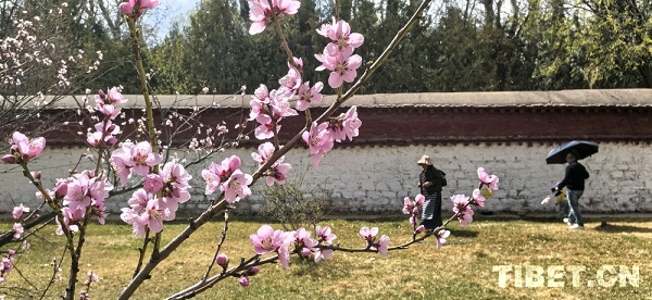 Le printemps à Lhassa s'installe avec son rythme de croisière. Là où le vent passe, les saules balancent délicatement leurs branches, les cygnes jouent dans l'eau, y dessinant de légères ondulations. La terre humide du printemps voit les bourgeons percer leur enveloppe, les arbres s'animer et les fleurs s'épanouir en sourires.