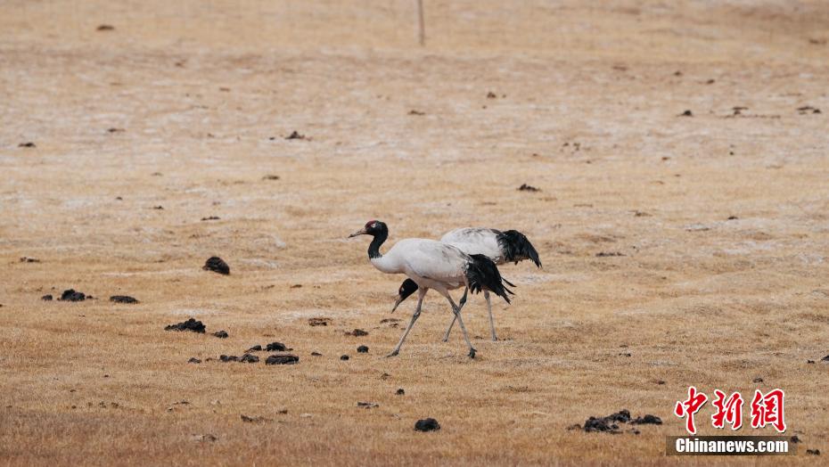 Ces derniers jours, le bourg de Xiariha, situé dans le comté de Dulan de la préfecture autonome mongole et tibétaine de Haixi, dans la province du Qinghai, a accueilli des grues à cou noir, une espèce protégée de premier niveau national en Chine. Selon le Bureau des forêts et des prairies de Dulan, grace à l'amélioration continue de l'environnement écologique, les grues à cou noir arrivent à Dulan chaque année à la fin du mois d'avril, elles vont y séjourner jusqu'à la mi-juin, avant de poursuivre leur pérégrination.