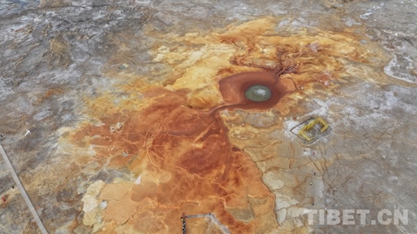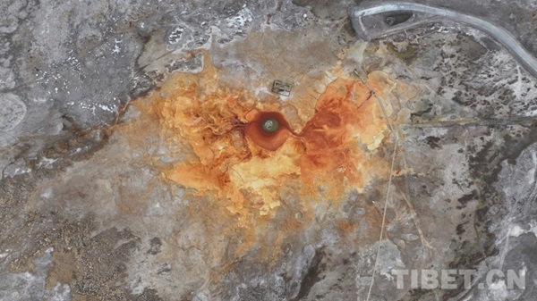 En partant en voiture depuis la ville de Mangya, dans la préfecture autonome mongole et tibétaine de Haixi, de la province du Qinghai, on atteint, après avoir quitté le bourg de Huatugou, les vastes prairies d'Alar, situées au bord du lac Gasi, c'est là que l'on peut tomber par hasard sur une source d'un rouge éclatant : la source Aiken, surnommée ? l'?il du diable ?. En mongol, cette source est appelée ? Aiken Bulag ? qui signifie ? source originelle ?, elle est considérée comme le ? grand ?il ? du front de la ville de Mangya.
