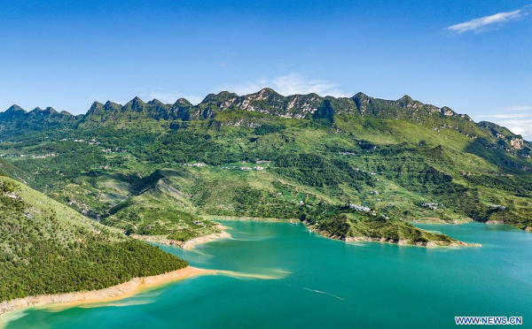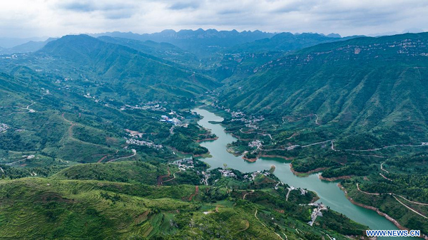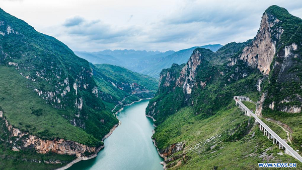 Photo aérienne prise le 28 juin 2025 montrant le paysage du site touristique de la rivière Zangke à Liupanshui, situé dans la province chinoise du Guizhou (sud-ouest). (Photo : Tao Liang)