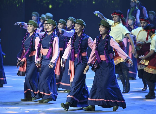 Un gala intitulé "Chants joyeux de la région du plateau enneigé" est organisé à l'occasion du 60e anniversaire de la fondation de la région autonome du Xizang, dans la capitale régionale Lhassa, le 20 ao?t 2025. (Photo : Xie Huanchi)