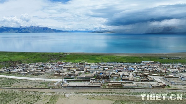 Situé dans le comté de Nyima, à Nagqu, dans la région autonome du Xizang, le lac Tangra Yumco est le quatrième plus grand lac du Xizang. Sur sa rive sud s'élève l'imposante montagne enneigée Dargo, tandis que sur sa rive nord se trouve l'ancien village d'Ombu-Sud. En plein été, le lac est entouré de montagnes et offre un paysage où l'eau et le ciel se confondent. Les prairies bordant ses rives sont d'un vert luxuriant, et des oiseaux aquatiques effleurent la surface du lac avec élégance, ajoutant une touche de vitalité à cette quiétude.