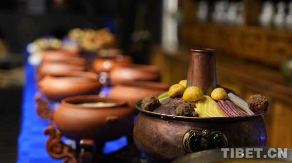 Avec originalité, le restaurant Phum Ba Ri a aménagé un espace d'exposition sur la cuisine traditionnelle tibétaine, sur le fourneau, des marmites de cuivre bouillonnent en libérant des ar?mes alléchants, des plats tibétains finement dressés attirent le regard. Selon Kelsang, spécialiste en culture culinaire du restaurant : ? Les traditions culinaires tibétaines accordent une attention particulière aux principes de santé, les modes de cuisson privilégiés, tels que la cuisson à l'eau ou à la vapeur, permettent de préserver au maximum les nutriments des aliments. Tous nos ingrédients proviennent des paturages du plateau, et sont entièrement naturels et sans additifs. ? Trésor des trésors, b?uf des glaciers, gateau de tsampa, ?ufs vapeur au safran du Xizang, champignons dorés grillés au beurre… Chaque plat constitue une carte de visite éclatante de la culture du haut plateau.