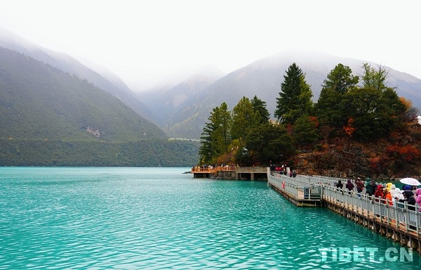 Le lac Basum Tso, également connu sous le nom de lac Draksum Tso, est situé dans le comté de Gongbo gyamda, de la ville Nyingchi, dans la région autonome du Xizang. Il s'agit du premier site touristique naturel du Xizang classé 5A, soit le plus haut niveau national. à la fin de l'automne, une bruine inattendue enveloppe le Basum Tso d'un voile vaporeux.
